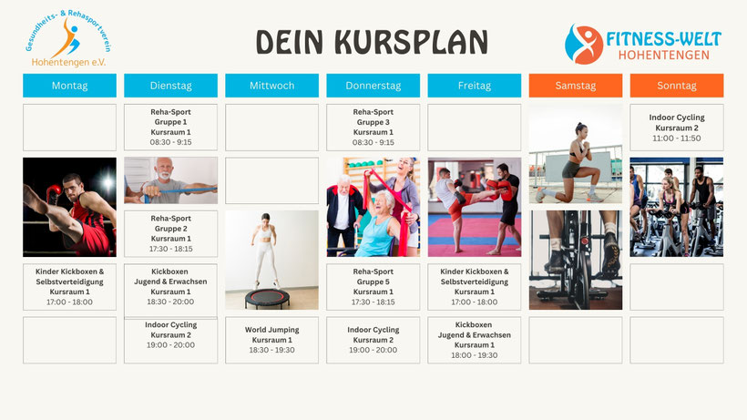 Bei den Kursen: World Jumping, Indoor-Cycling sind aufgrund der begrenzten Teilnehmerzahl Anmeldungen notwendig.